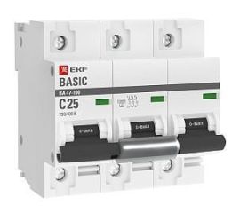Выключатель автоматический 20А 3П трехполюсный характеристика C 10kA ВА 47-100 Basic mcb47100-3-20C-bas EKF
